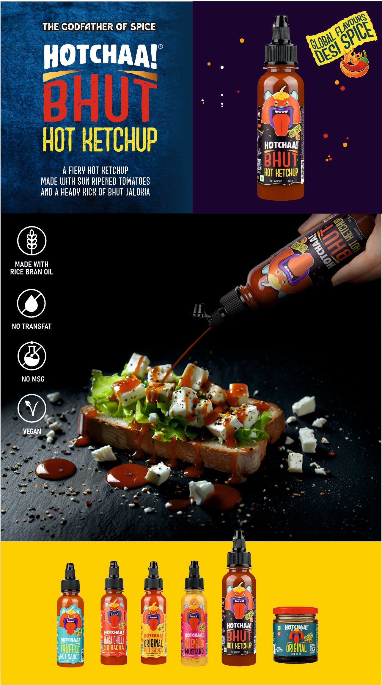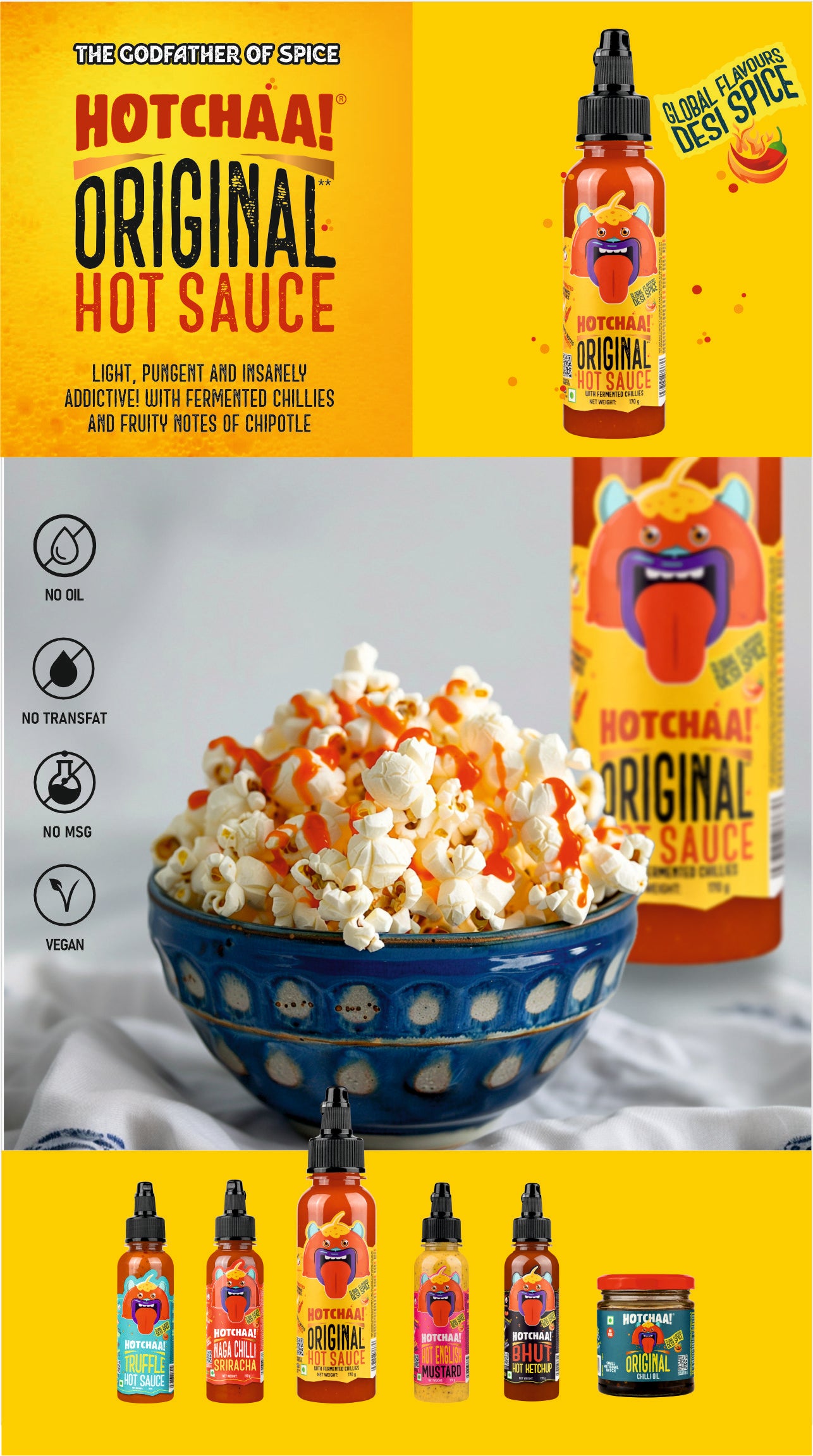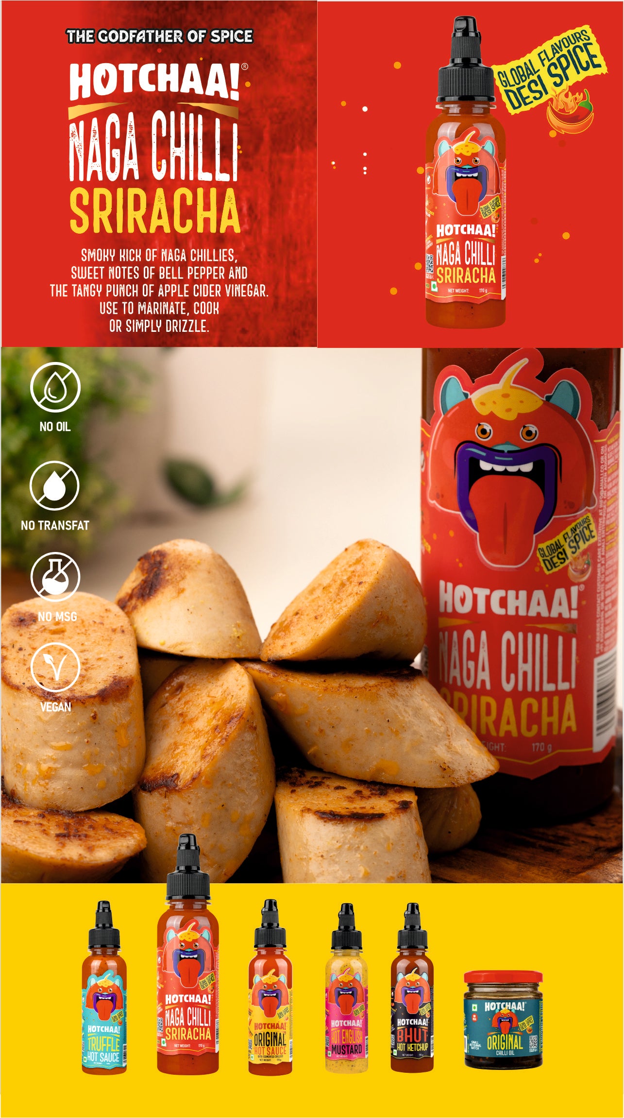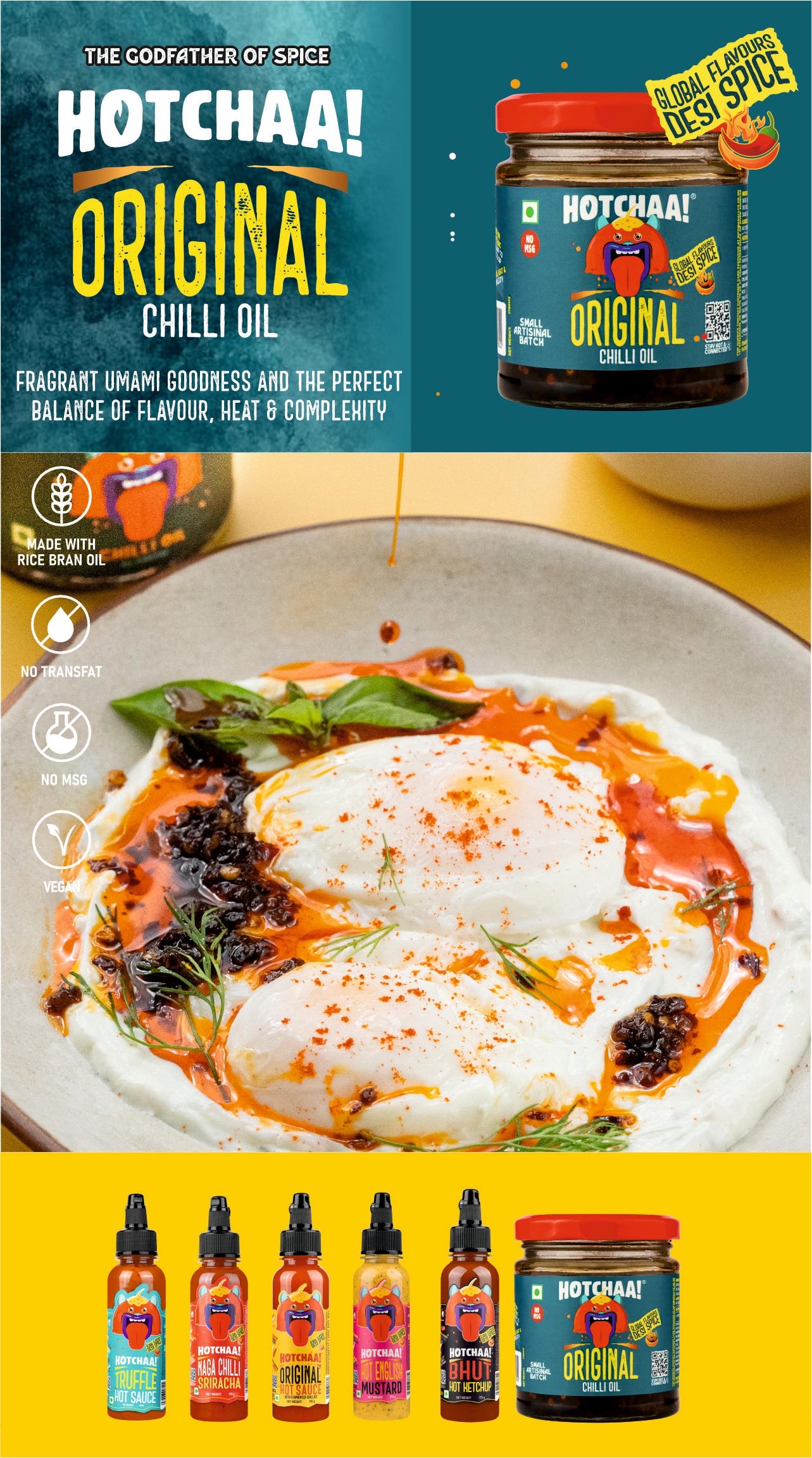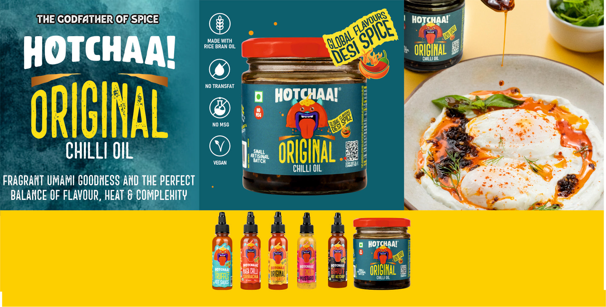 Hotchaa! is all about Indian heat with International flavours, magical gourmet creations with the best local Indian chillies and spices. Our chilli oils and hot sauces are sometimes fiery, sometimes piquant and always rich with intriguingly complex flavours. Designed to elevate any meal, Hotchaa! products are made with the freshest locally sourced ingredients – with no MSG, and zero trans fats. Paired with a vast variety of foods, Hotchaa!’s gotcha covered from dollop to drizzle to dip.